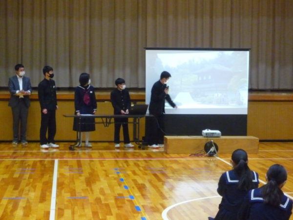 2022年5月17日 / 最終更新日時 : 2022年5月17日 白州中 その他 5月16日① 合同朝の会 この日の合同朝の会では,放課後の愛校作業の連絡と3年生4班による修学旅行班別自主見学の報告が行われました。 見学場所で学びを熱く伝えることができました。