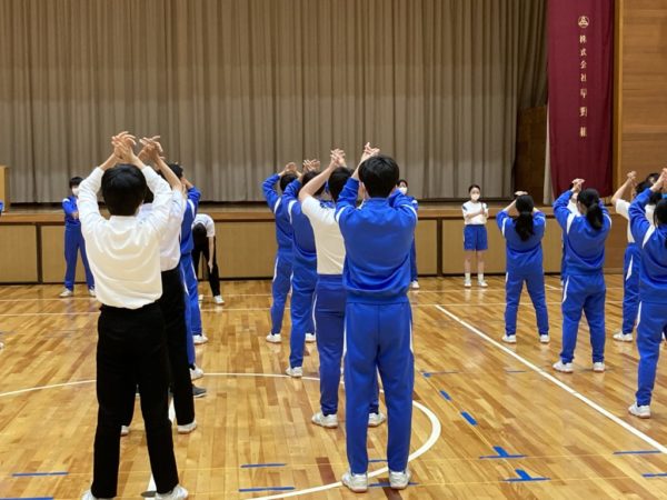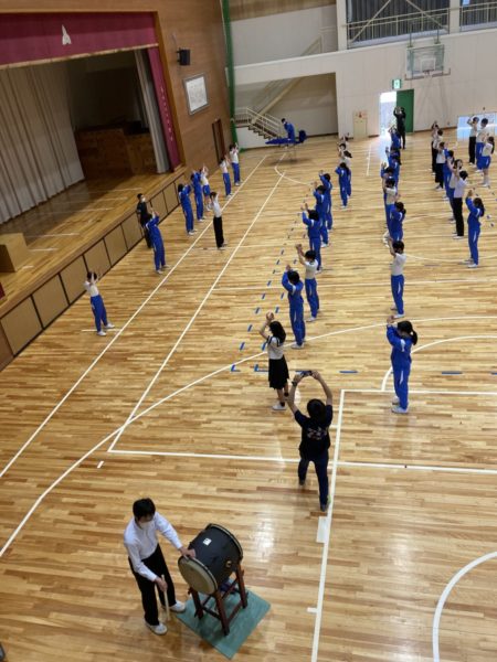 今日から全校応援練習が始まりました。6日の峡北支部総合体育大会激励集会に向け,取り組んでいます。