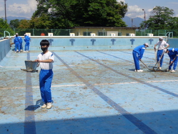 2022年6月16日 / 最終更新日時 : 2022年6月16日 白州中 その他 プール清掃を行いました 通常の清掃時や体育の時間等を活用して,プール清掃を行いました。かなりの泥と汚れがありましたが,子どもたちが熱心に取り組みきれいになりました。 プール開きが楽しみです。