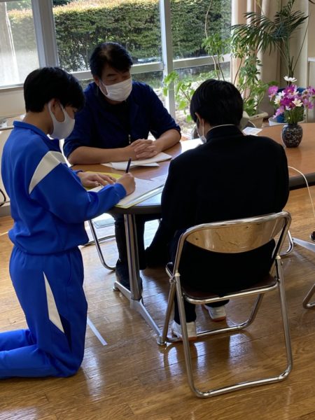 ① 2年生 今月末に行われる職場体験学習に向けて事前学習が進められています。この日は,職場体験先へ打合せのために電話をかけました。