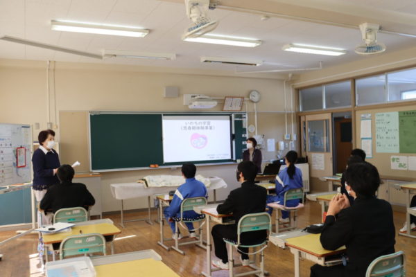 この日2年生は,北杜市役所ネウボラ推進課より保健師さんを講師に迎え,「いのちの学習」を行いました。命の大切さや尊さについて学ぶことができました。