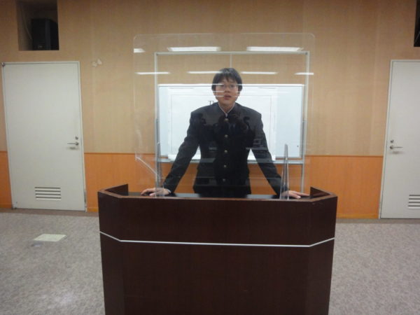 ② 峡北地区中学校英語暗唱大会に参加しました。この日,須玉ふれあい館で行われ,本校からも二年生と三年生から一名ずつ参加しました。本番は写真撮影ができませんので,会場での練習風景を紹介します。