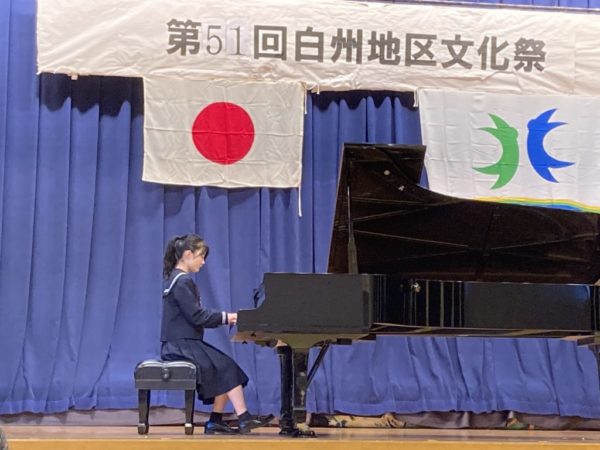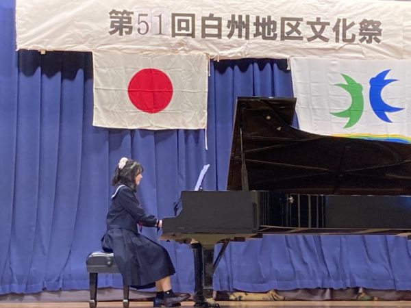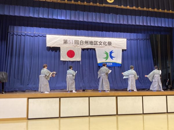 今年の文化の日は,三年振りに「第51回 白州地区文化祭」が開催され,本校生徒が出演しました。