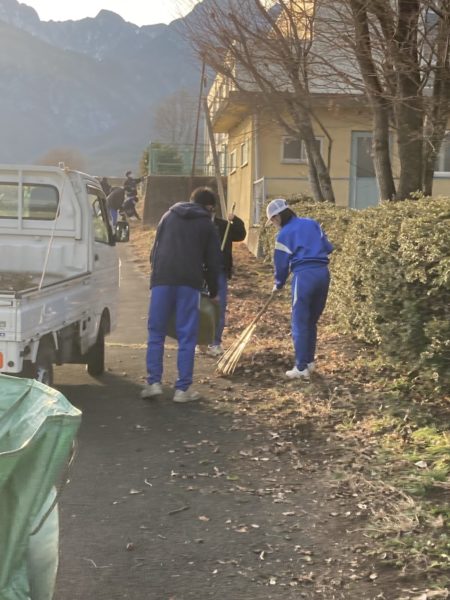 放課後,全校で校地とその周辺の落ち葉掃きをしました。