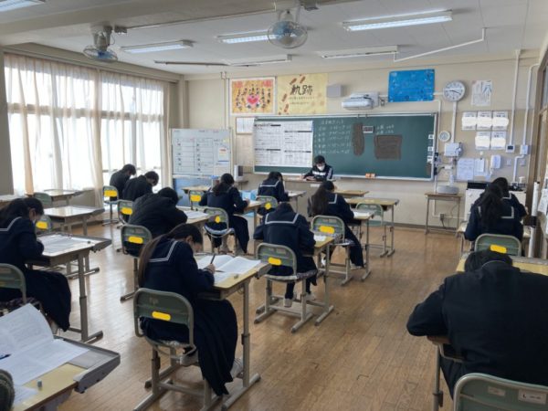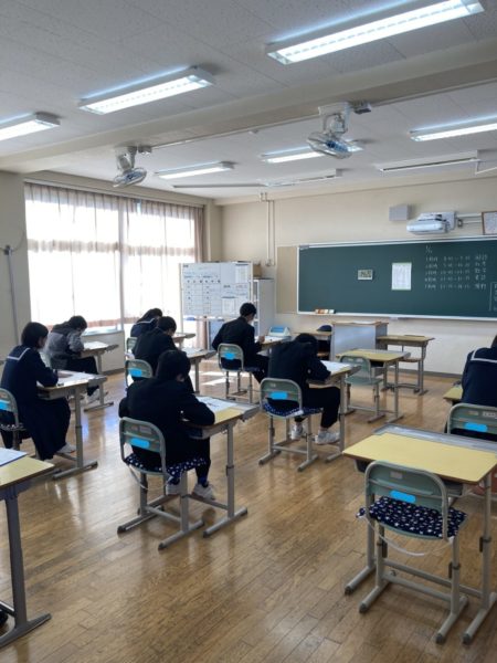 三年生は既に私立高等学校の入試を受検した生徒もおり,入試が本格的にスタートしました。三年生のみなさん,進路実現のために頑張ってください。応援しています。
