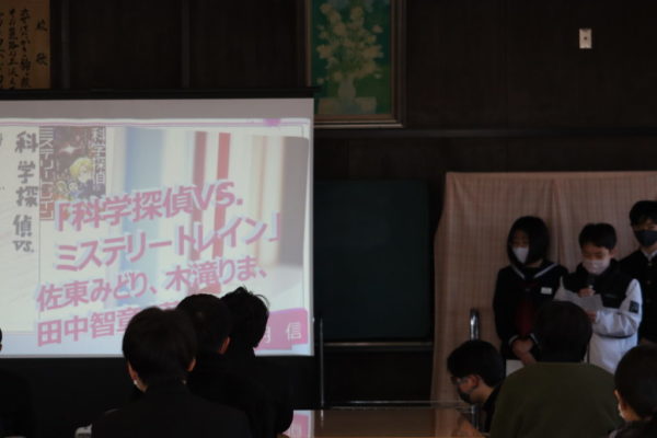 この日の合同朝の会では,図書委員会1年生による「おすすめ本の紹介」がありました。