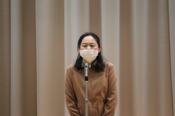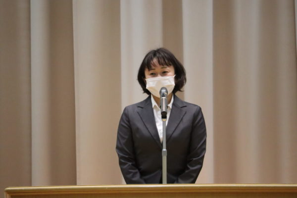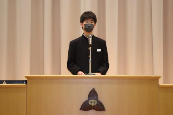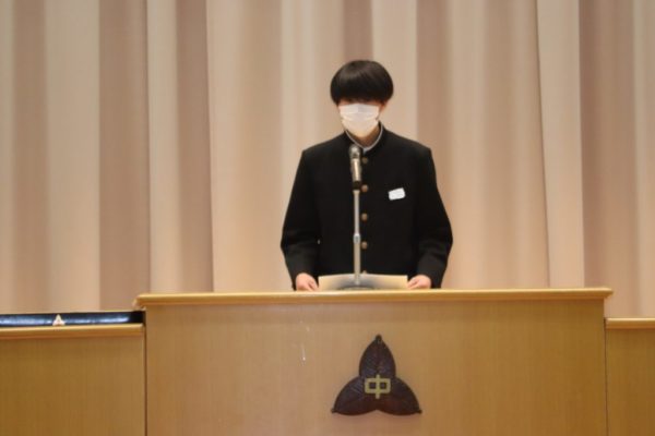 修了式の様子です。各学年の代表から1年を振り返っての成果と課題,来年度の抱負が話されました。