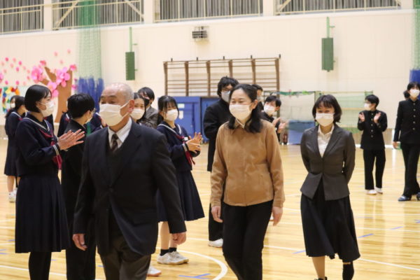 午後からは離任式が行われました。本年度は7名の先生が離任しました。