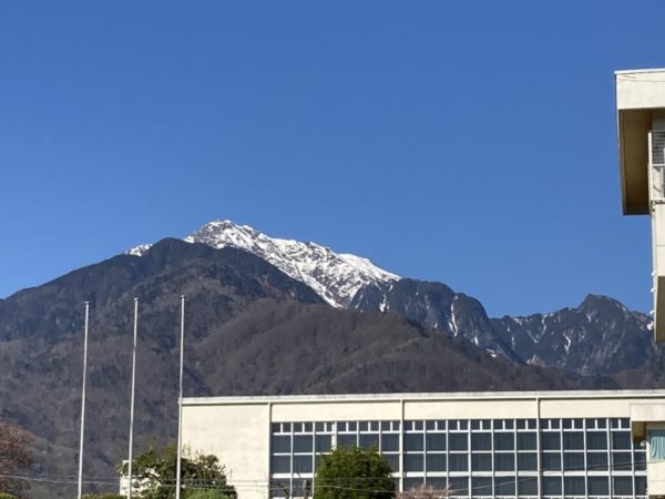 雲一つない空。今日も校庭からみる甲斐駒ヶ岳は「姿けだかき」凜々しいものでした。