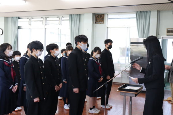 各学級の役員一人ずつに,校長先生より任命書が渡されました。