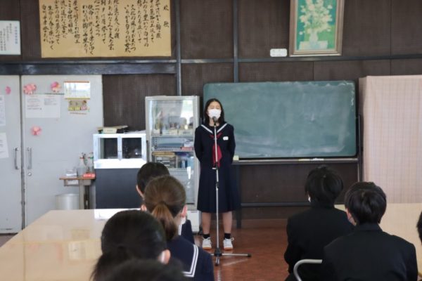 『あいさつは,人の気持ちを温かくしてくれたり,元気にしてくれたりします。また,人の心を開いてくれます。爽やかなあいさつが行き交う白州中学校にしましょう。』と教頭先生から「あいさつ」のお話がありました。