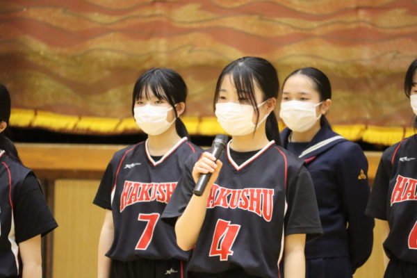 3年生が最後の支部総体やコンクールに掛ける思いを話していました。悔いの残らないよう,頑張ってください。