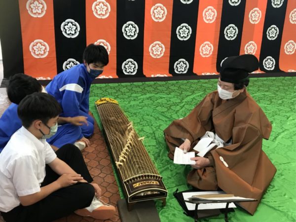 支部総体直前,何となく落ち着かない気持ちを「日本最古のオーケストラ 雅楽」の音色が癒やしてくれたようです。生徒一人一人,目を輝かせて説明を聞いたり,楽器体験をしていました。白州中から未来の演奏家が現れるでしょうか。そんな未来を期待をさせる位の熱気が伝わる時間となりました。