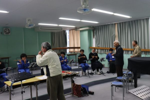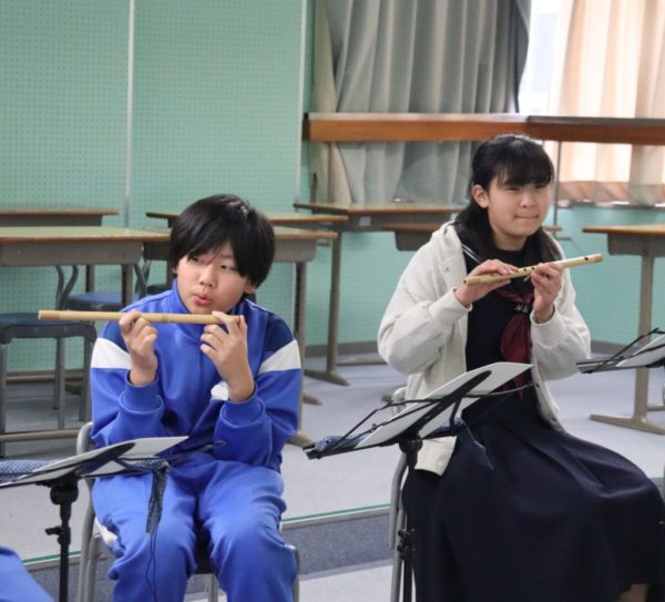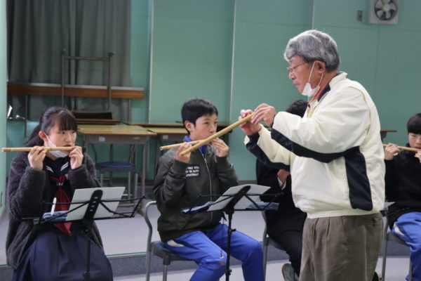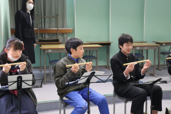 5校時には1年生の音楽の授業で「篠笛」の学習会が開かれました。講師に北杜篠笛の会の会員様を3名お迎えしました。昨年までは感染症拡大防止も考慮し,開催できませんでした。本年度本講では感染状況が落ち着いているので,久しぶりの開催となりました。