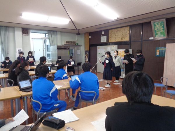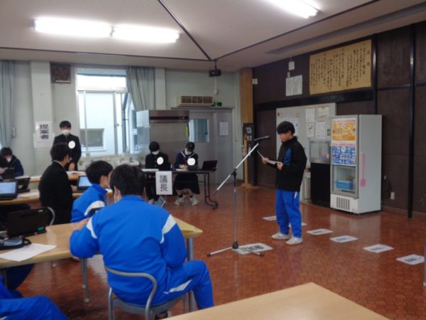 2023年12月18日 / 最終更新日時 : 2023年12月18日 白州中 その他 後期生徒総会 15日の午後,後期生徒総会が開催されました。 生徒会長のあいさつ 今回は,ランチルームで開催し,総会資料はペーパーレスでクラウド上に配信しました。1年生からも積極的に意見が出されました。 議長の2人です。 2年生からも積極的に質問・意見が出されました。 各委員会に対する感謝の思いや新たな提案も出されました。 自分たちの学校生活を向上させるための生徒会活動を振り返って,今後につなげるために活発な討議が繰り広げられました。