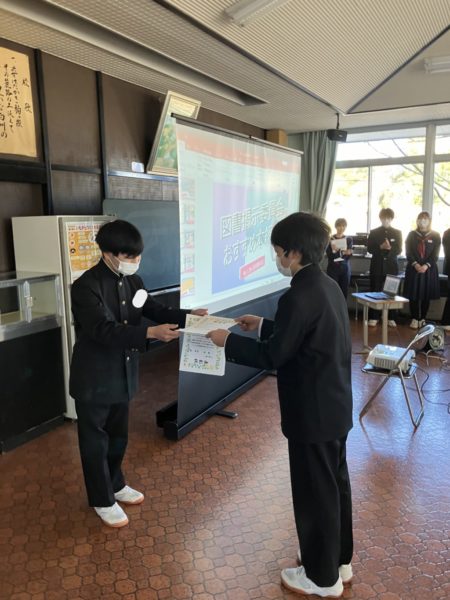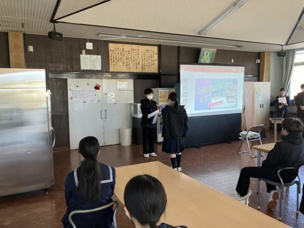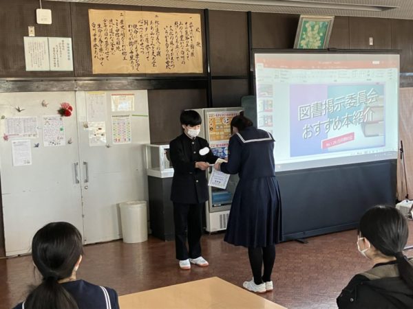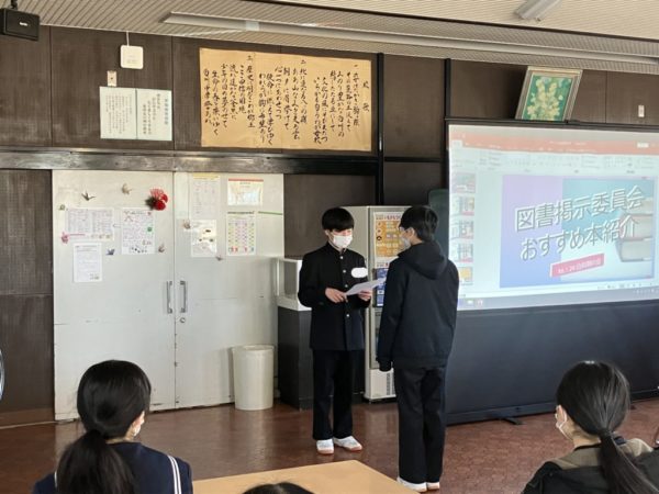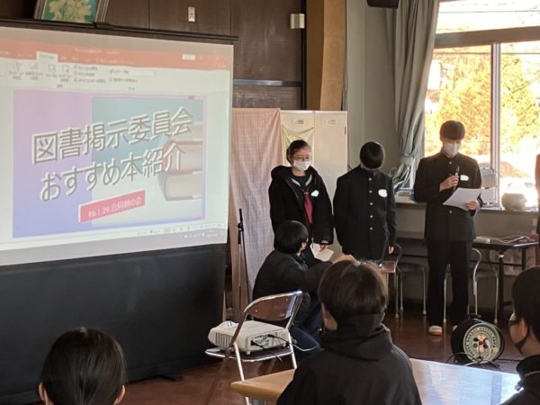 その後,図書掲示委員会のおすすめ図書の紹介がありました。