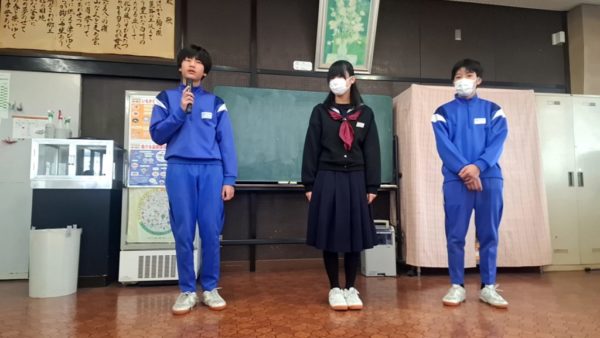 2025年2月1日 / 最終更新日時 : 2025年2月3日 白州中 その他 今週の白州中 合同朝の会 美化委員会による清掃表彰 3年生(英語) 2年生(理科) C組(数学) 1年生(数学) 月曜日の給食 3年生を送る会実行委員会 生徒会委員会 3年生を送る会決起集会 テーマ発表 各部門長より 応援団紹介 学年代表決意発表(1年生) (2年生) 3年生を送る会応援団始動 リーダー打ち合わせ 火曜日の給食 、、、そんな矢先、、、チラッ チラッ、、、70周年記念白州中印伝、、、本物 美術現代アート作品完成~植樹の儀~ 私たちの作品は こちらです☺️ うーん 3年生を送る会実行委員(総務部門) (看板装飾部門) (スライド部門) (記念品部門) 水曜日の給食 給食委員会による節分クイズ 節分給食 1・2年生合唱練習 1月が終わりました 3年生登校日 残り26日 1・2年生登校日 残り34日