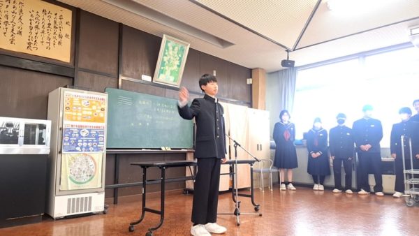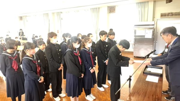 2025年4月19日 / 最終更新日時 : 2025年4月19日 白州中 その他 今週の白州中~春風にのって~ 合同朝の会 前期学級役員任命式 生徒指導の先生より「SOSの出し方」について 1年生(音楽) 2年生(道徳) 3年生(道徳) 月曜日の給食 1年生初めての朝はく☺ 全国学力学習状況調査(3年生) 復習テスト(2年生) (1年生) 火曜日の給食 3年生(国語) 2年生(理科) 1年生(社会) 金曜日の給食 3年生(体育) 令和6年度PTA役員さんによる70周年印伝コラボブース準備 2年生(体育) 1年生(体育) 各種検診 朝NIE(3年生) (2年生) (1年生) 校庭にも春が訪れ・・・ん!?! 環境整備に努める校長先生 週末の部活動(バスケットボール部合同練習) 景色も空気も 一気に春となりました 白州中も新しい春を迎え 毎日が動き出しています