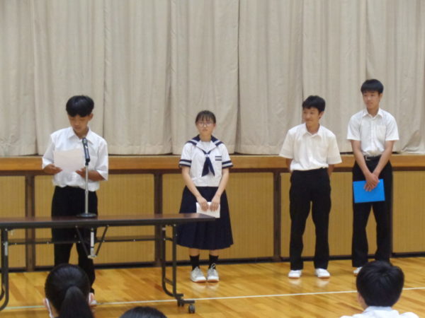 各学年と生徒会本部代表による2学期の抱負発表