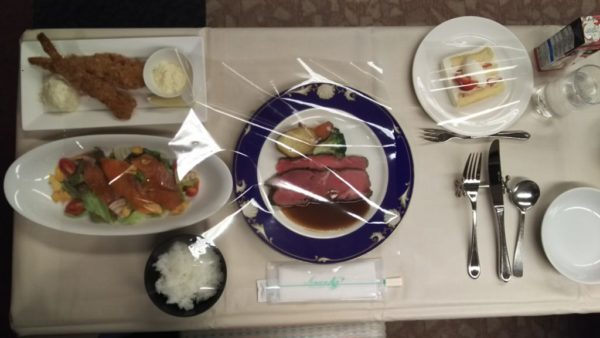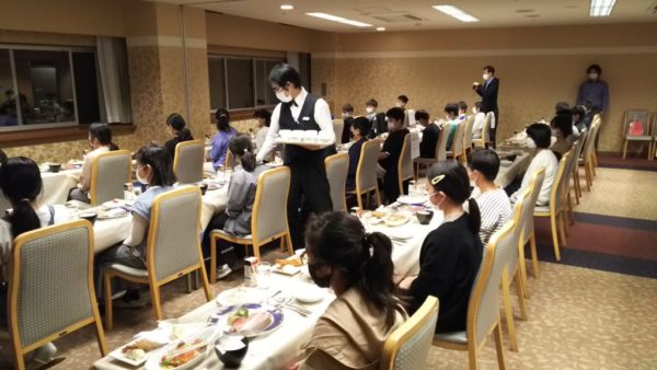 夕食の時間です。とても豪華です。黙って食べなくてはならないのでちょっと残念です。