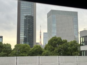 新幹線が見えたり、ゆりかもめが近くを通ったり…。そして、ビルの隙間から東京タワーも見えました。今日の夕方に東京タワーに行くので、テンションが上がった子どもたちでした。