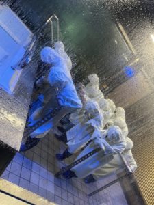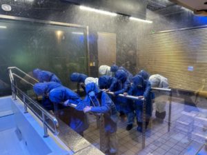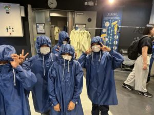 2024年6月14日 / 最終更新日時 : 2024年6月14日 小淵沢小 日記 【修学旅行③】道路が川に? 3グループに別れて様々な体験をしています。 まずは豪雨体験! 長靴とカッパを着用し、台風のときの雨や風の体験をしました。