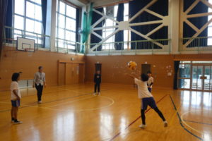 ②「バスケ&バレークラブ」今回はバレーに取り組みました。パスが繋がると嬉しいですね。