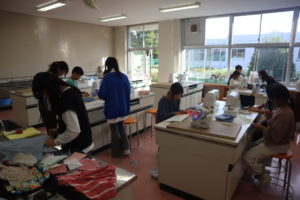 ④「家庭科クラブ」料理や裁縫をするクラブです。今回はランチマットを作っていました。