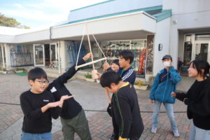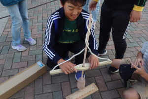 ⑦「科学工作クラブ」今回は火起こしをしていました。火はついたのかな?