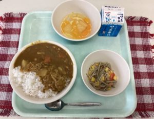 カレーライス 牛乳 カラフルきんぴら フルーツミックス