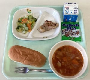 2025年7月3日 / 最終更新日時 : 2025年7月3日 小淵沢小 日記 7月3日の給食 ***今日の給食*** コッペパン 牛乳 鶏肉のハニーマスタード焼き フレンチサラダ トマトスープ さつまいもスティック 【今日のひとくちメモ】 鶏肉(とりにく)のハニーマスタード焼(や)きは、給食(きゅうしょく)で初(はじ)めて出(で)るメニューです。「ハニー」とは、はちみつのことで、「マスタード」とは洋風(ようふう)のからしのことです。今日(きょう)は粒(つぶ)マスタードを使(つか)っています。 味付(あじつ)けはちみつと粒(つぶ)マスタード、塩(しお)、マヨネーズ、レモン汁(じる)です。はちみつの甘(あま)さとマスタードの辛(から)さが絶妙(ぜつみょう)で、くせになるおいしさです。