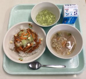 【9月12日 タコライス 牛乳 ABCスープ 手作り青りんごゼリー】