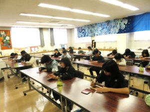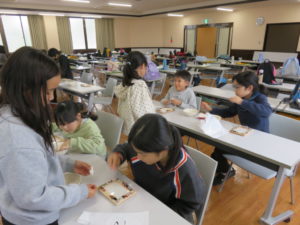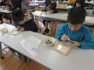 県立図書館と伝統工芸館の2か所へ行ってきました。案内をしてくださった司書さんや学芸員さんへのあいさつや話を聞く態度もすばらしく、5年生に向けて成長している様子に感動しました。図書館では、蔵書量の多さや展示の仕方に驚いたり、バックヤードで80年前の戦争中の新聞を見つけたりと、驚きと発見の連続でした。伝統工芸館では、山梨県の伝統工芸を13個すべてを見ることができました。なかでも水晶や翡翠などの貴石に目を奪われていました。貴石を使ったフレーム作りでは、「この石はタイガーアイだね。」なんて言葉が出るほど貴石に詳しくなって帰ってきました。ぜひフレームの出来をほめていただけたらと思います。お忙しい中、おいしいお弁当を準備していただきありがとうございました。