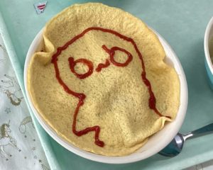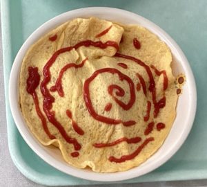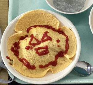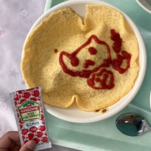 ☆オムライスは、ケチャップで好きな絵を書く子もいました。個性があって、見ていて楽しかったです♪