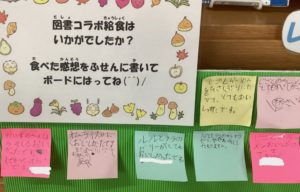 ☆図書室の前には、図書コラボ給食の感想を貼るスペースが設けられています♪