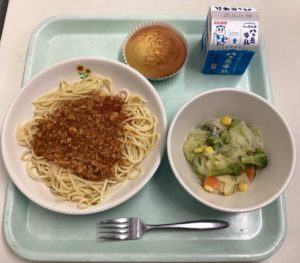おばけのアッチのミートソーススパゲティ 牛乳 野菜のスープ煮 カトルカール