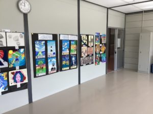 そんな活動のひとつとして、近隣の児童・生徒の絵や習字などを各校に順番に回して展示していくのが『児生連作品展』です。