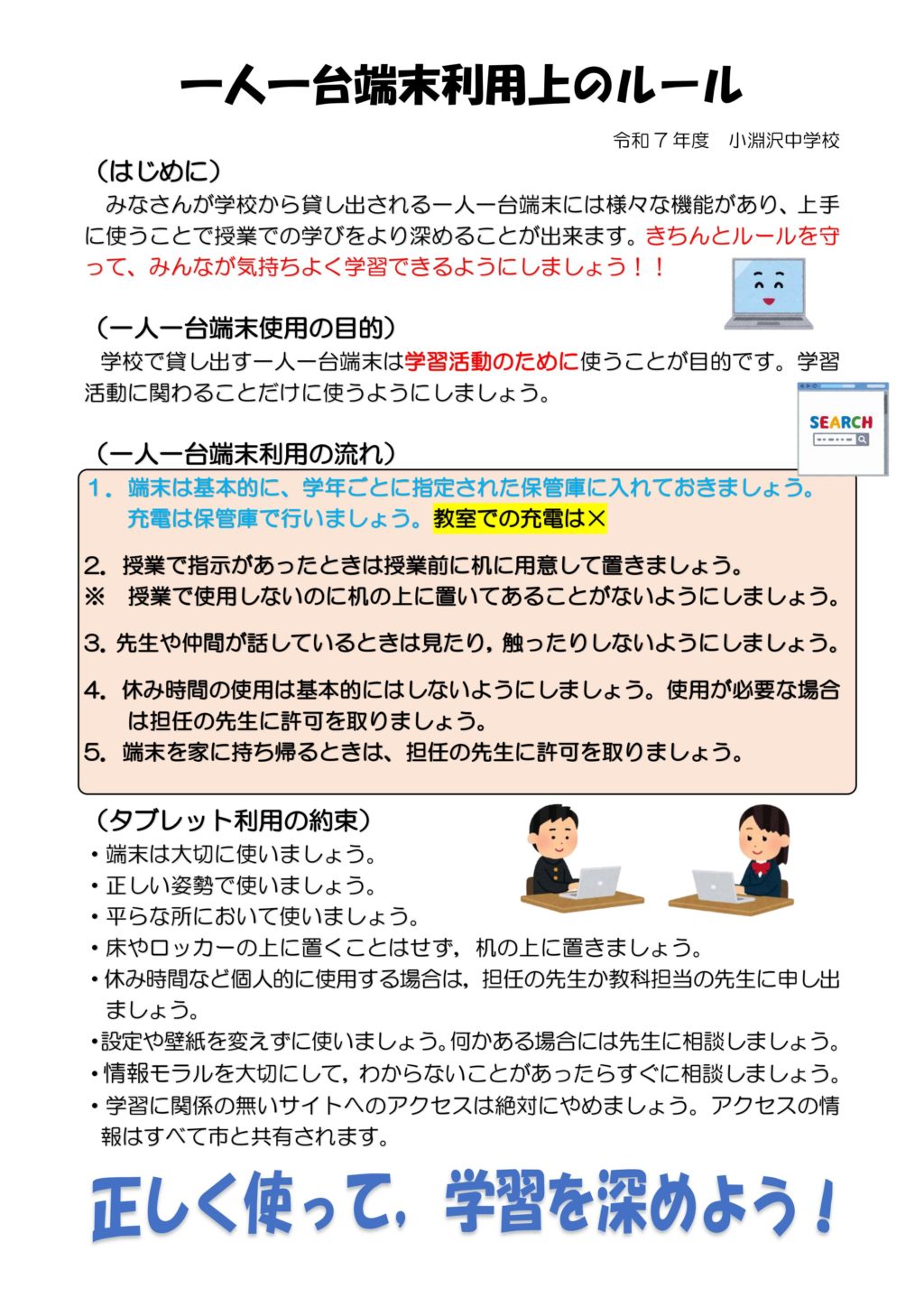 (2025.10.14更新)学習者用端末の更新について新端末の概要や利用上の注意点はこちらをご覧ください学習用端末の更新について北杜市GIGAスクール構想 (北杜市のサイトへ移動します) 利用上のルール 端末利用Q&A-1