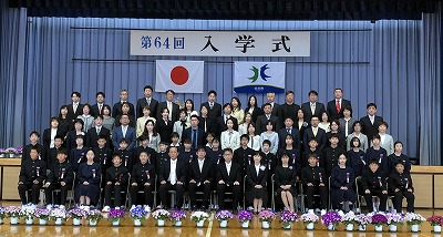 午後から第64回入学式が行われました。新しい制服に身を包んだ新入生が,緊張しながらも新しい学校生活の始まりに向けて希望に満ちた表情を見せてくれました。