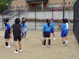 女子ソフトテニス部の練習風景です。月曜日の様子です。