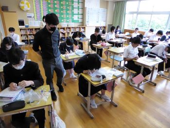 2024年5月31日 / 最終更新日時 : 2024年5月31日 小淵沢中 学校生活 朝練習 学校開放日 玄関先のイチゴが花から果実へと変化してきました。もうすぐ赤く色づいてくるようです。 昨日のバレー部の朝練習の様子です。 3年B組の教室に行くと、理科の授業をしていました。記録テープで台車の運動の様子を記録し、5打点(0.1秒)ごとに切ってグラフにするという授業でした。全員が作業を一生懸命やっている姿がよかったです。こういう授業を通して、理科が好きになってほしいと思いました。 Post Views: 428