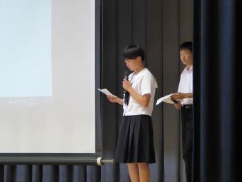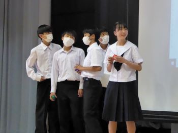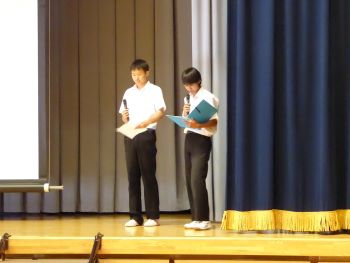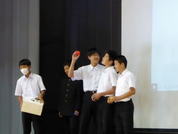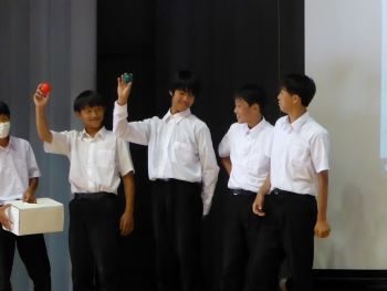6月28日(金)の体育祭に向けて、ブロックの色決めがおこなわれました。自分のグループが何色のブロックになるかを抽選で決めます。代表者がステージに出て4色のボールを引いていきました。いよいよ、体育祭に向けての活動が始まります。精一杯熱く頑張ってほしいと思います。