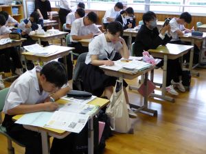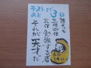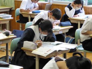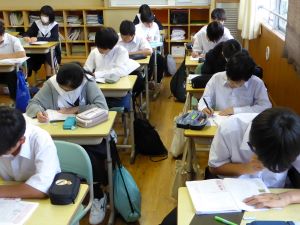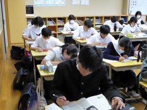 定期試験前、本校では放課後に学びたいむを実施しています。テストまであと4日、それぞれが自分で決めた課題に取り組んでいました。頑張ってほしいと思います。