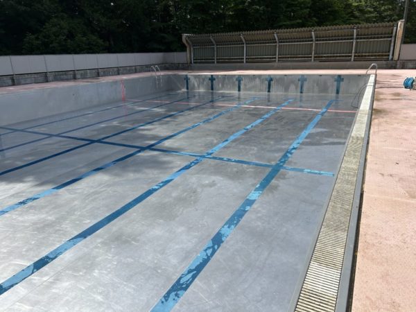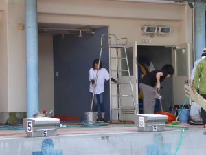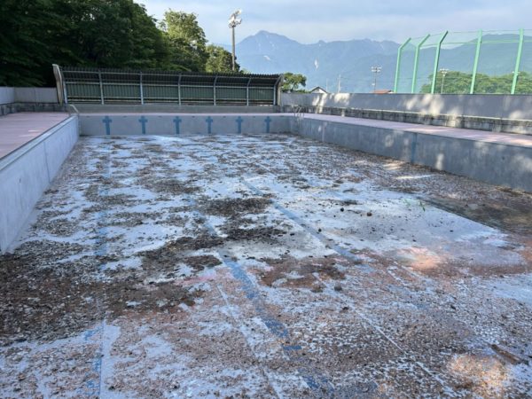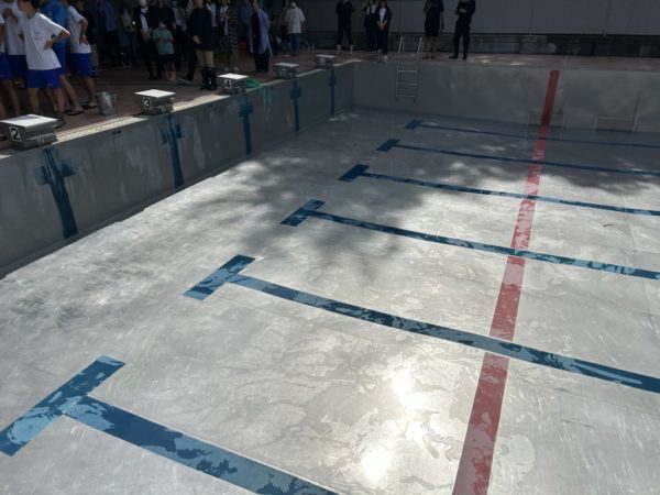 掃除の後のプールです。こんなにきれいになりました。更衣室などの室内も保護者の方がきれいにしてくれました。