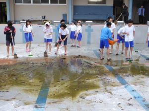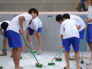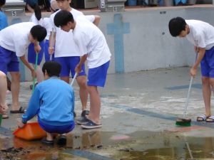 6月15日(土)朝7時から8時半までの1時間半、3年生の保護者と生徒でプール清掃をしました。はじめは落ち葉で汚かったプールもピカピカになりました。3年生と保護者の皆さんありがとうございました。1,2年生は3年生に感謝の気持ちを持ち、プールの授業を頑張りましょう。感謝の気持ちで一杯です。ありがとうございました。