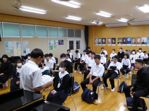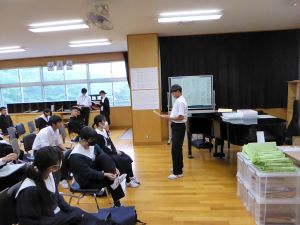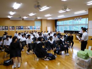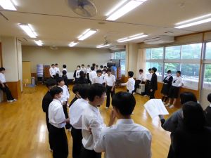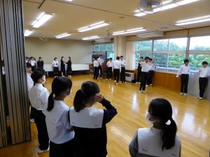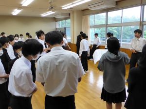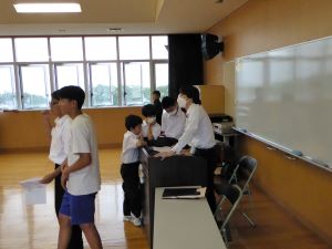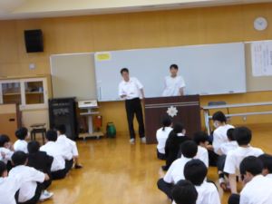放課後は、縦割り会議がおこなわれました。3年生のリーダーの生徒が指示を出し会議を進めていました。28日の体育祭に向け頑張ってほしいです。