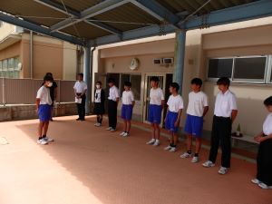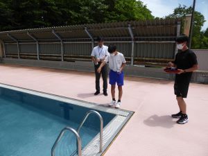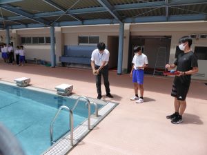6月26日(水)昼休みに生徒会正副会長、学級会長でプール開きをおこないました。事故がなく安全にプールの授業がおこなうことができるようにと塩とお米とお酒でお清めをしました。体育祭が終わればいよいよプールの授業です。
