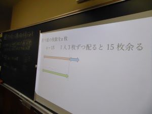 小淵沢中学校では、授業の実践力を高めるために日々教材研究を進めています。2学期は先生方がお互いに授業を参観できる機会を作っていきます。本日10月7日(月)は、1校時に1年B組数学で小川先生の授業を参観しました。「式が表している量は何か」を考えさせる授業でした。どうやって解けばいいのか難しい場面でも、今回の授業での考え方を身につければ、どうにかなりそうな授業内容でした。今後、順に先生方が実践を行い、わかる授業を目指し全職員で頑張っていきたいと思います。