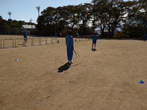 10月21日(月)中北教育事務所の先生が学校訪問に来ました。飯塚先生の2年生の体育の授業を見学しました。元気いっぱいでソフトテニスの授業を頑張っていました。