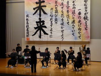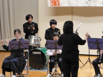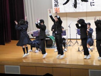 10月27日(日)小淵沢地区文化祭で吹奏楽部が2曲MONGOL800の「小さな恋のうた」とCreepy Nuts(クリーピーナッツ)の「Bling-Bang-Bang-Born」を演奏しました。2曲目は一年生がダンスを披露するなど楽しい演奏になりました。観客の皆さんからも大きな拍手をいただきました。素晴らしい発表でした。